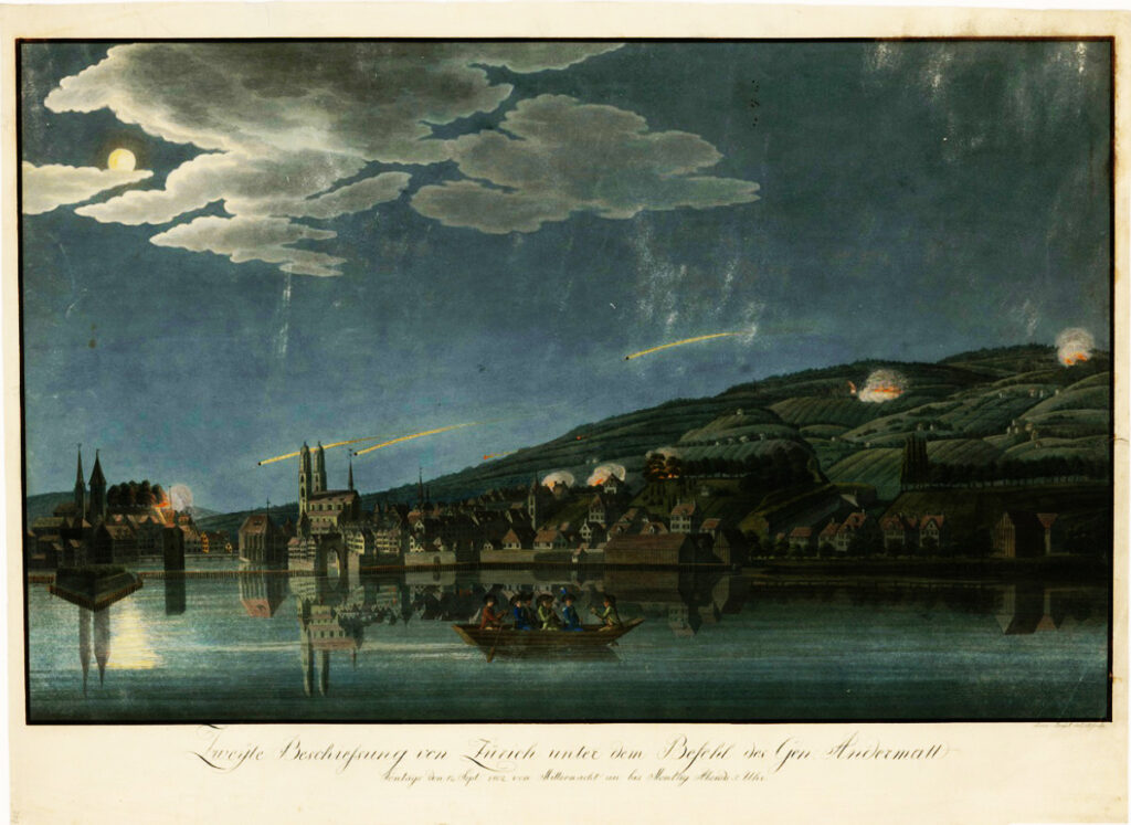 Beschiessung Zürichs während des Stecklikrieges: föderalistischer Aufstand gegen die Helvetische Republik. Quelle: graphikportal.org